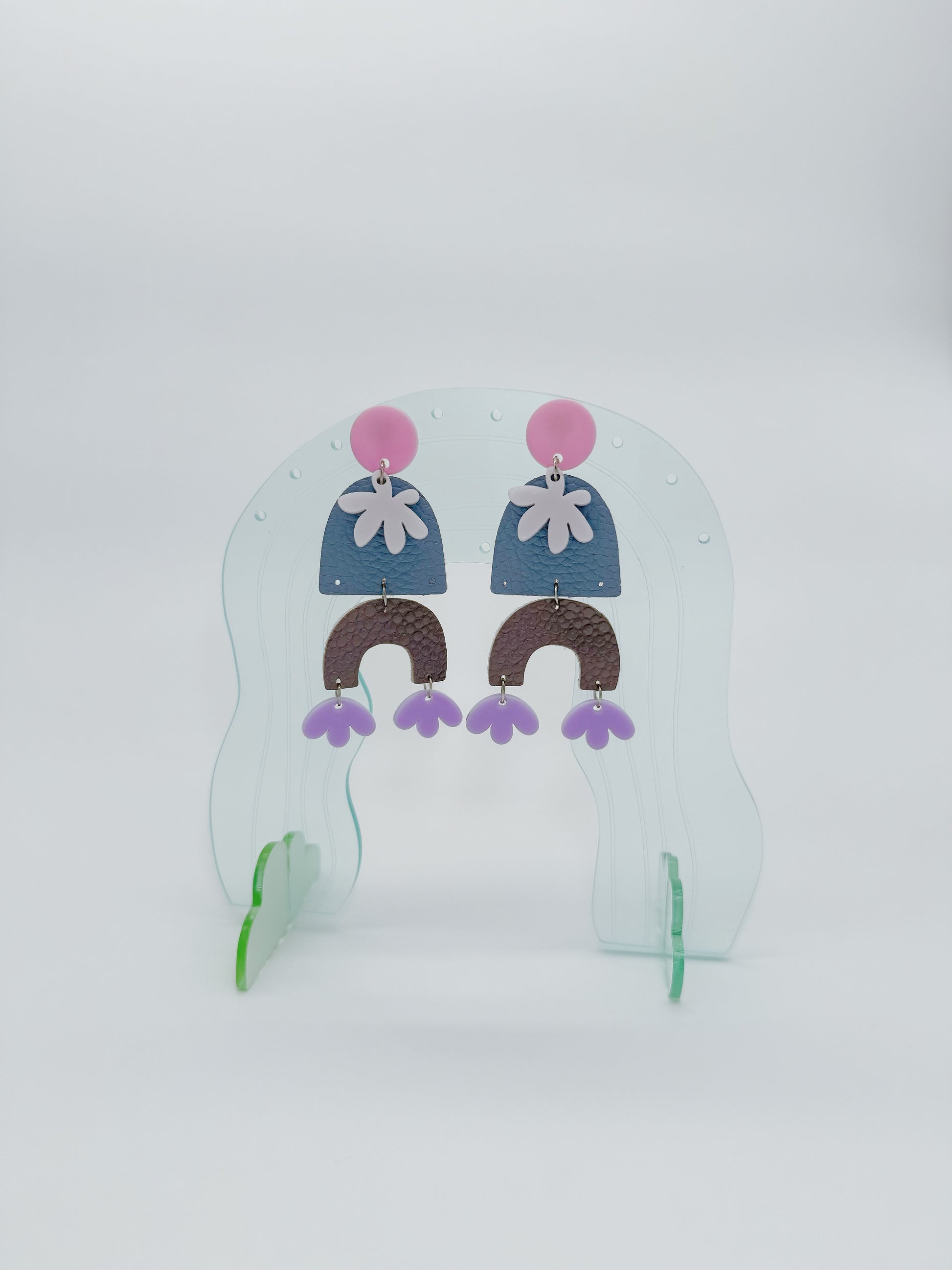 Materials: Acrylic, Leather, Silver stud, Stainless Steel.
