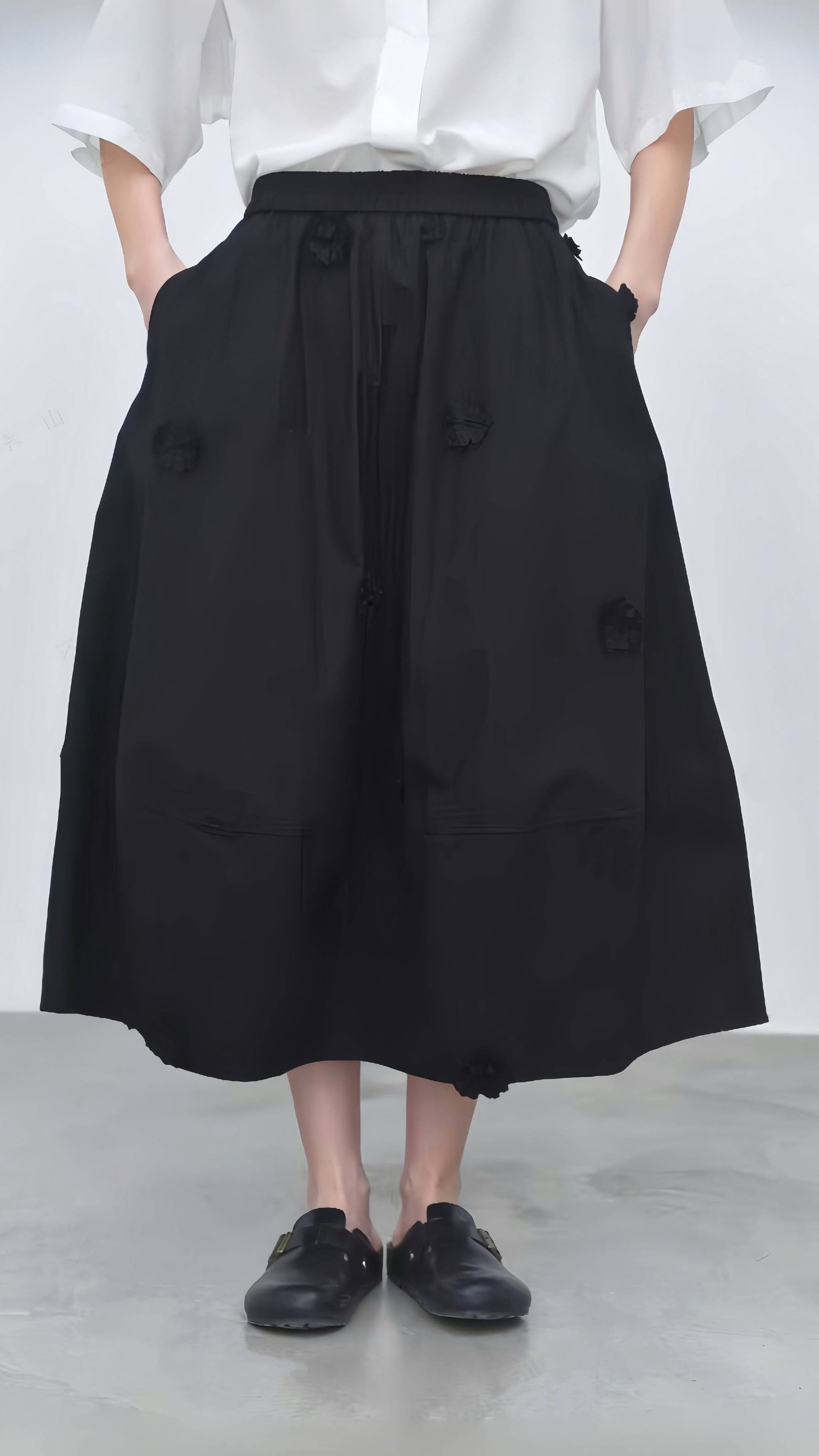 3D Small Flowers Deco Cotton Skirt Available in Black and Pink