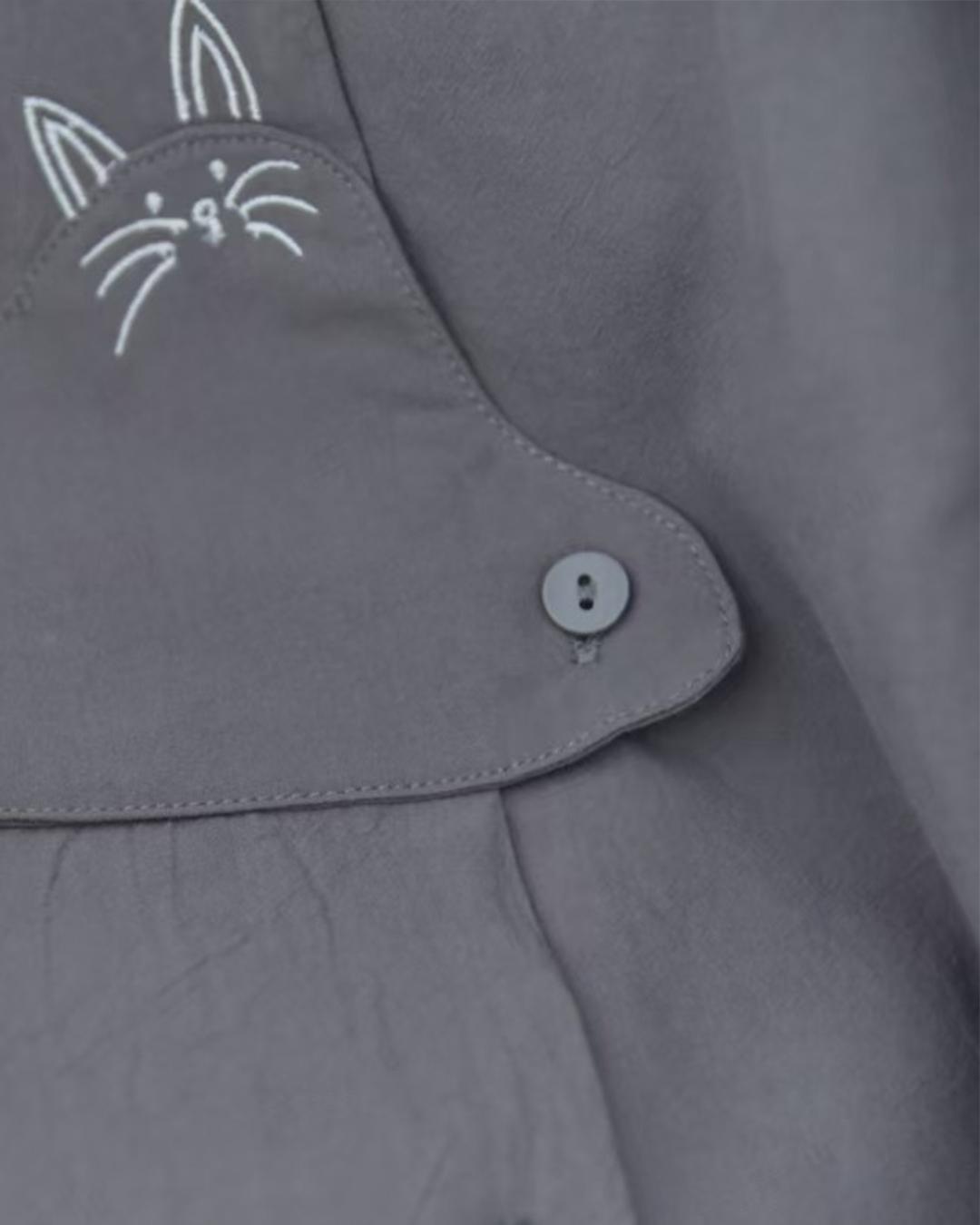 Cat Cloud Tail Short Sleeves Cotton Shirt