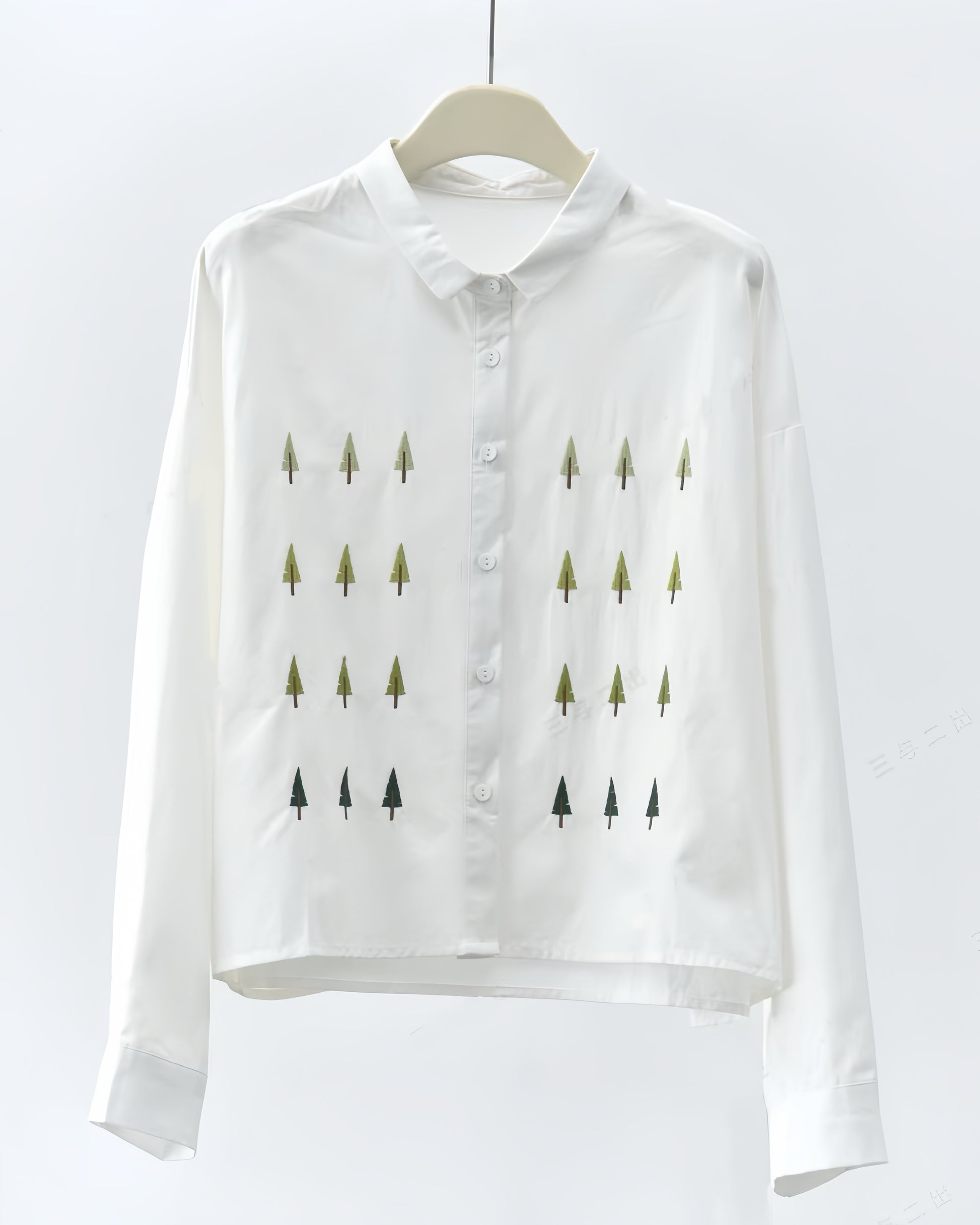 Long-sleeve Cotton Shirt with 3D Tree Graphic Embroidery