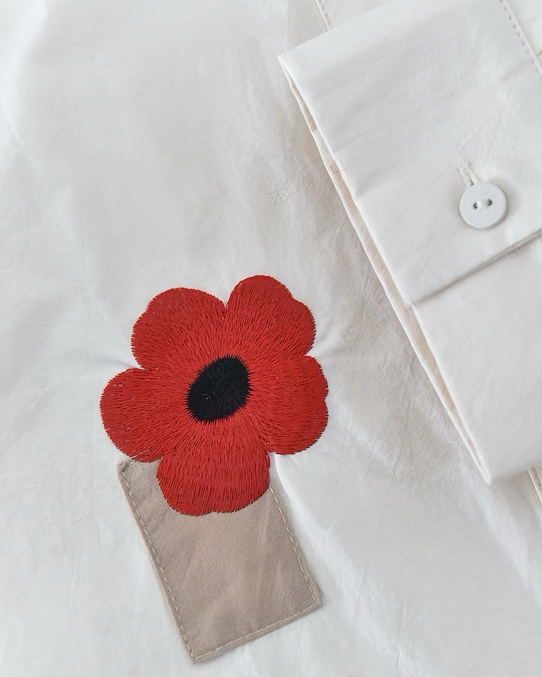 3D Small Flowers Deco Cotton Shirt, colour is cream.