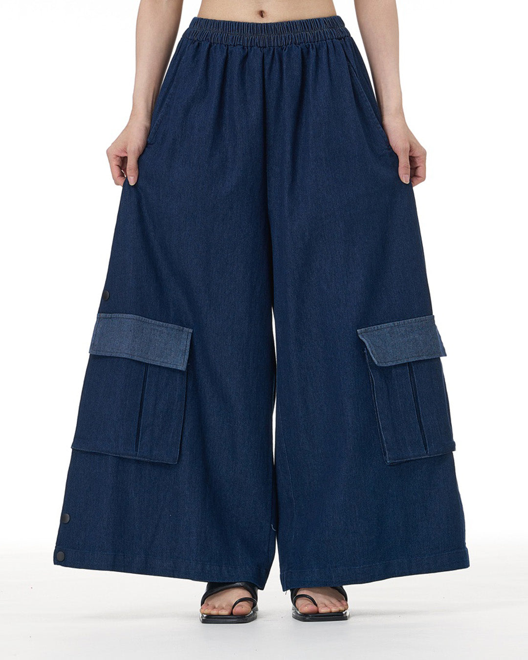 Two-Tone Oversize Pocketss Deco Denim Pants